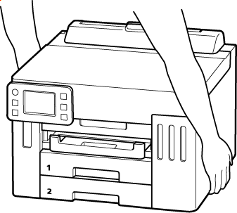 Țineţi imprimanta de părţile sale laterale și duceți-o cu ambele mâini.