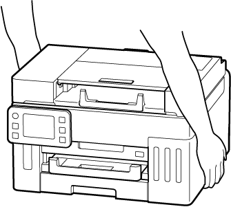 Pegang pencetak di kedua sisinya dan bawa menggunakan kedua tangan.