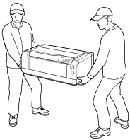 Duas pessoas são necessárias para carregar a impressora, cada uma segurando uma das extremidades da impressora. O peso pode causar dores nas costas ou similares.