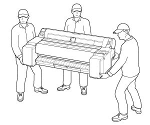 A quantidade de pessoas a seguir é necessária para carregar a impressora. O peso pode causar dores nas costas ou similares.