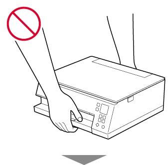 Nu țineți imprimanta de casetă. Țineţi imprimanta de părţile sale laterale și duceți-o cu ambele mâini.