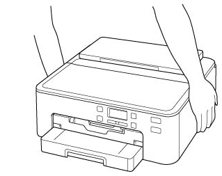 Jangan memegang pencetak di bagian Kotak Kertas. Pegang pencetak di kedua sisinya dan bawa menggunakan kedua tangan.
