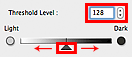 (Slider) to the right to increase the threshold value and thus increase the black areas. Move the slider to the left to decrease the value and thus increase the white areas. You can also enter a value (0 to 255).