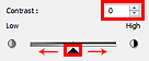 (slīdnis) zem Kontrasts (Contrast) pa kreisi, lai samazinātu attēla kontrastu, vai pa labi, lai palielinātu attēla kontrastu. Varat arī ievadīt vērtību (no -127 līdz 127).