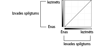 Programmatūrā ScanGear attēlu skenēšana ar skeneri ir ievade, bet attēlošana monitorā ir izvade. "Toņu līkne" parāda toņu ievades un izvades balansu katrā sadaļā Kanāls (Channel).