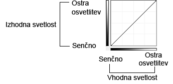 Pri gonilniku ScanGear predstavlja optično branje slik prek optičnega bralnika vhod, prikaz na zaslonu pa izhod. »Krivulja odtenka« kaže vhodno in izhodno ravnovesje za vsak Kanal (Channel).