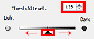 (drsnik) v desno in povečajte mejno vrednost ter s tem črna območja. Premaknite drsnik v levo in zmanjšajte vrednost ter s tem povečajte bela območja. Lahko tudi vnesete vrednost (od 0 do 255).