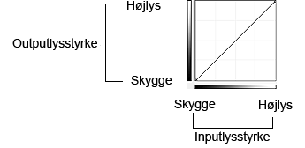 Du kan justere lysstyrken på et billede ved at vælge den graftype (tonekurve), der viser balancen mellem toneinput og -output, via