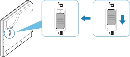 قم بنقل مفتاح تأمين الماسحة الضوئية الموجود أسفل الماسحة الضوئية باتجاه علامة القفل (