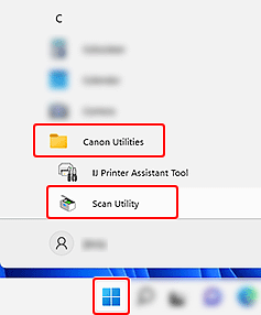 (Start-knappen) velger du Alle apper (All apps) > Canon Utilities > Scan Utility.
