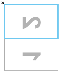 Käännä kohdetta 180 astetta ja kohdista sitten näytön oikealla puolella (2) näkyvän sivun alakulma tason nuolen kulmaan (kohdistusmerkki).