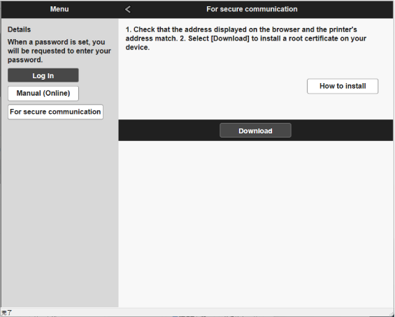 Registering Printer's Root Certificate to Web Browser for TLS (SSL) Communication