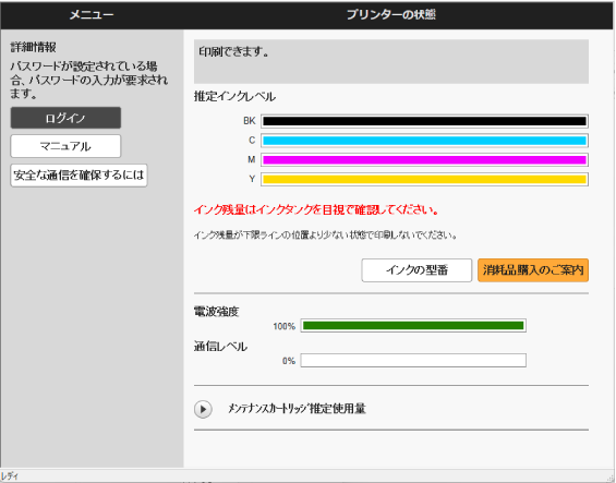 ご使用のパソコンのウェブブラウザーに[リモートUI]が表示されます。