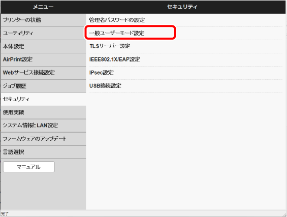 一般ユーザー向けに機能を制限するには、以下の手順で一般ユーザーモード設定を有効にして、一般ユーザーパスワードを設定します。