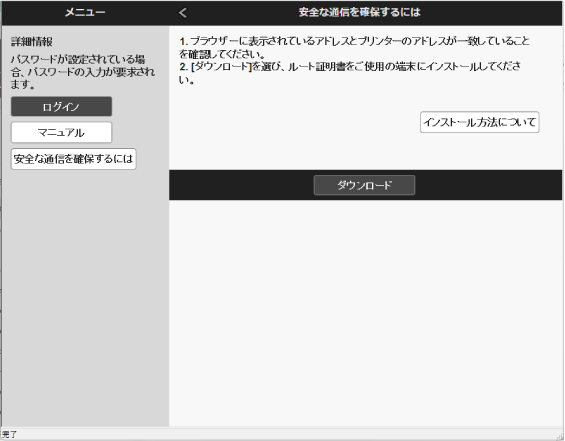 TLS(SSL)通信のためにプリンターのルート証明書をウェブブラウザーに登録する