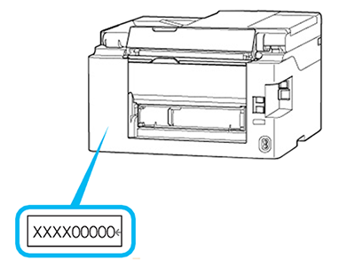 プリンターのシリアルナンバーは9文字(前半4文字がアルファベット、後半5文字が数字)で、本体のシールに記載されています。