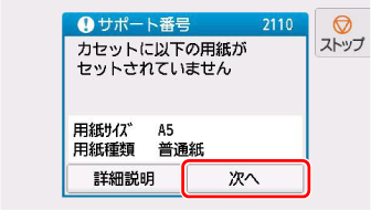 カセットにセットしている用紙に対して、適切ではない印刷設定が指定されました。