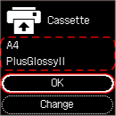Nadat u de papierinformatie (papierformaat en mediumtype) hebt gecontroleerd, selecteert u OK met de knoppen