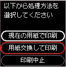 ボタンで[用紙交換して印刷]を選び、OKボタンを押す