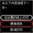 使用打印机的按钮选择更换纸张,然后按OK按钮。