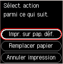 Important- En fonction des paramètres de voter imprimante, le message Impr. sur pap. déf. pourrait ne pas s'afficher.
