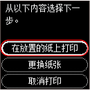 按钮选择在放置的纸上打印,然后按OK按钮。