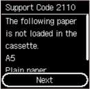 Följ stegen nedan om du vill fortsätta skriva ut/kopiera trots att papperet som har fyllts på i kassetten och den registrerade pappersinformationen som har registrerats i skrivareninte stämmer överens.