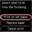 Välj Skriv ut ilagt papp. (Print on set paper) med skrivarens