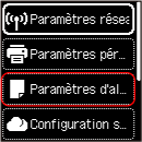 de l'imprimante pour faire défiler l'écran ACCUEIL de l'imprimante et sélectionnez Paramètres, puis appuyez sur le bouton OK.
