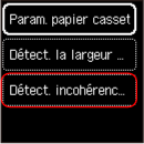 Sélectionnez Détect. incohérence param. pap. et appuyez sur le bouton OK.