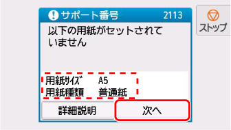 表示されている用紙情報が印刷設定と同じであることを確認してください。