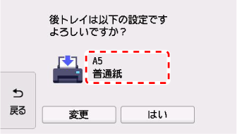 表示されている用紙情報が印刷設定と同じであることを確認したあと、[はい]を選んでください。
