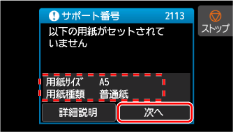 表示されている用紙情報が印刷設定と同じであることを確認したあと、[はい]を選んでください。