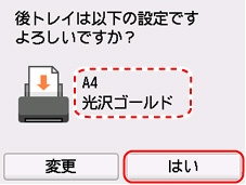 用紙サイズと用紙種類を確認したあと、[はい]を選んでください。