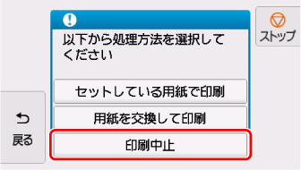 以下の手順で、後トレイにセットしている用紙に適した印刷設定を指定し、印刷をやり直してください。