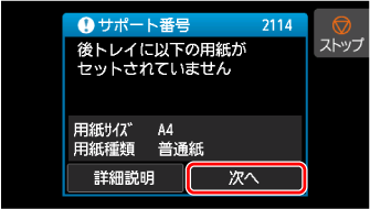 用紙サイズと用紙種類を確認したあと、[はい]を選んでください。