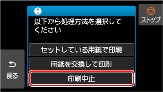 以下の手順で、後トレイにセットしている用紙に適した印刷設定を指定し、印刷をやり直してください。