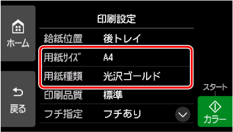用紙サイズと用紙種類を、後トレイの用紙に合わせる