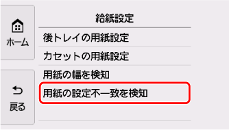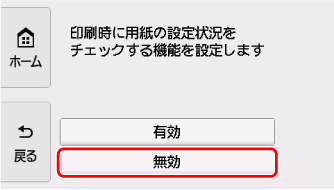 用紙設定の不一致を検知する機能を無効にするには、以下の手順で操作してください。