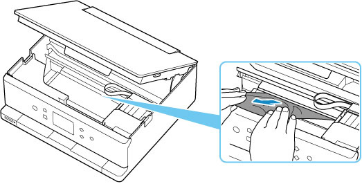 引き抜いた用紙が破れている、または欠けている場合は、プリンターの内部に紙片が残っている可能性があります。次のことを確認し、紙片がある場合は取り除いてください。