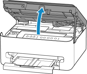 Als het vastgelopen papier zich onder de FINE-cartridgehouder bevindt, schuift u de FINE-cartridgehouder helemaal naar rechts of naar links, zodat u het papier gemakkelijker kunt verwijderen.