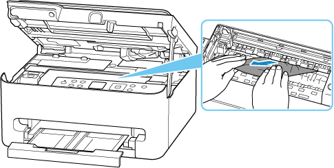 Als het papier scheurt wanneer u het naar buiten trekt, kan er wat papier in de printer blijven zitten. Controleer het volgende en verwijder eventueel achtergebleven papier uit de printer.