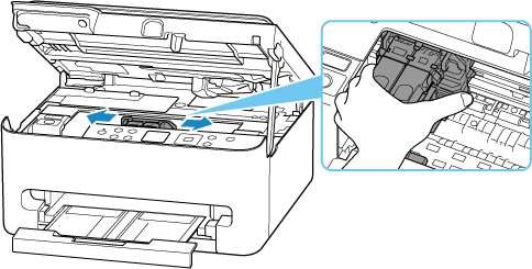 Als het vastgelopen papier zich onder de FINE-cartridgehouder bevindt, schuift u de FINE-cartridgehouder helemaal naar rechts of naar links, zodat u het papier gemakkelijker kunt verwijderen.