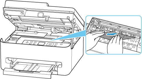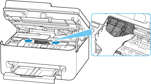 Če se je papir zagozdil pod držalom kartuše FINE, pomaknite držalo kartuše FINE skrajno desno ali skrajno levo, kakor koli bo lažje odstraniti papir.