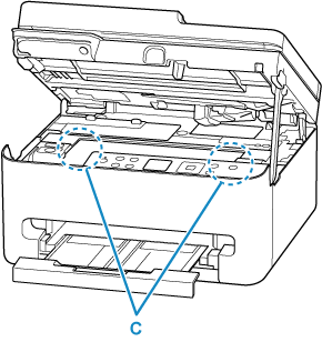 - Ali je kaj papirja ostalo v levem in desnem praznem prostoru (C) v tiskalniku?