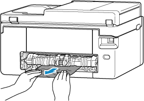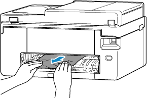 Zagozdeni papir trdno pridržite z obema rokama in ga počasi izvlecite.