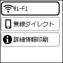 [Wi-Fiセットアップ]を選び、OKボタンを押し、Wi-Fiの設定方法を選んでください。