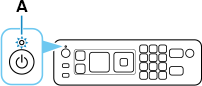 Če je napajanje vklopljeno, sveti lučka VKLOP (ON) (A).