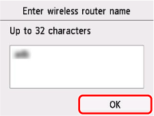 Controleer of de netwerknaam (SSID) juist is en tik op OK om de invoer te voltooien.