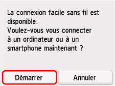 Écran Connexion facile sans fil : Suivez les instructions sur l'ordinateur, le smartphone, etc. pour effectuer l'opération.